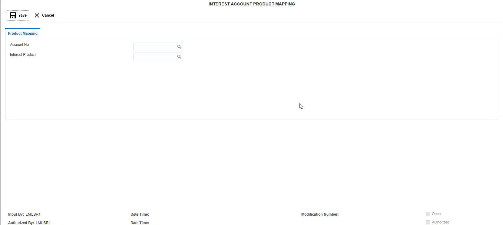 Interest Product Mapping setup helps you in account class maintenance. Click on Interest Product Mapping setup Setup link in the Setup page to open the Interest Account Product Mapping page..\