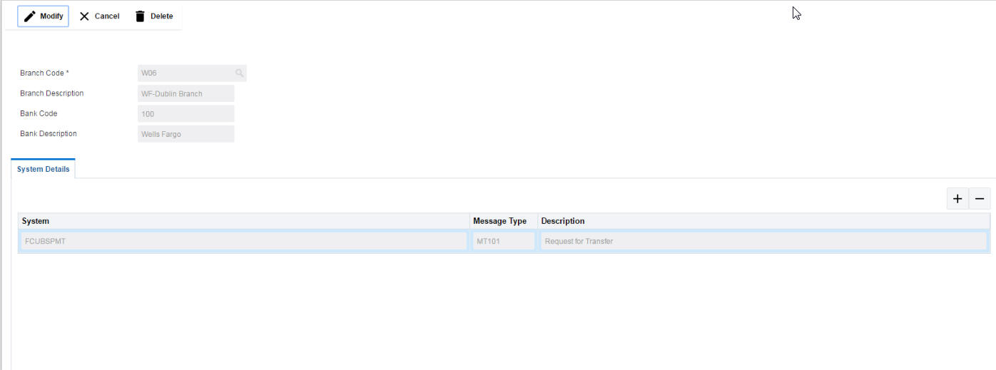 Specify the branch code.You can select the branch code from the option list. The list displays all the branch codes maintained in the system