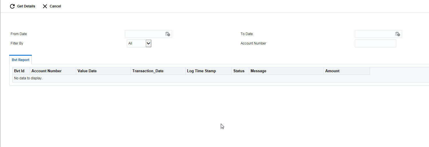 Specify the account number for which the BVT details need to be viewed.