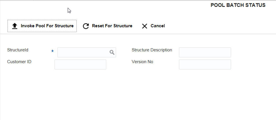 Specify the structure for which the pool has to be executed or reset. You can also select the structure ID from the option list.The list displays all the structure IDs maintained in the system.