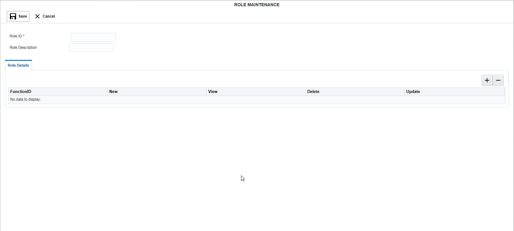 You can assign the rights to the new role using this option. Click ‘+ button to add row under Role Details section. Specify the following details here: