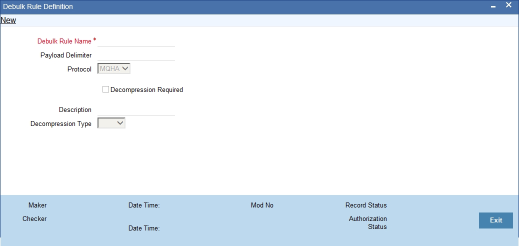 You can invoke ‘Debulk Rule Definition’ screen by typing MSDDEBRL’ in the field at the top right corner of the Application tool bar and clicking on the adjoining arrow button...