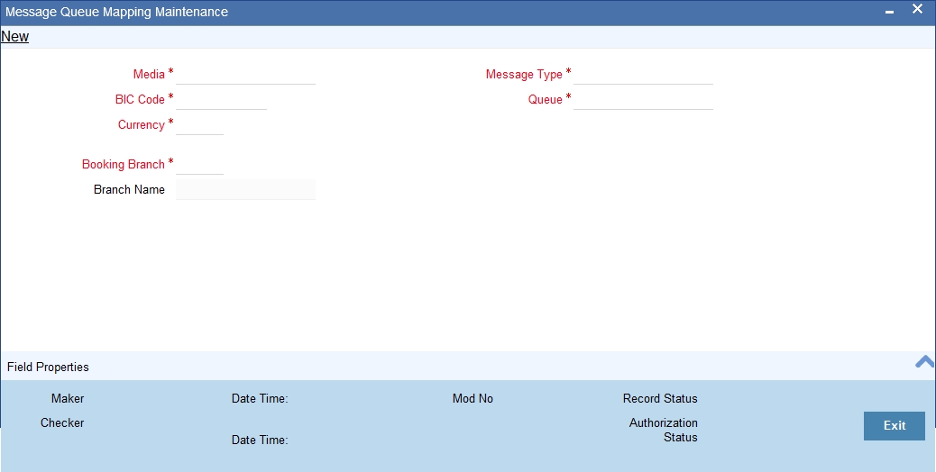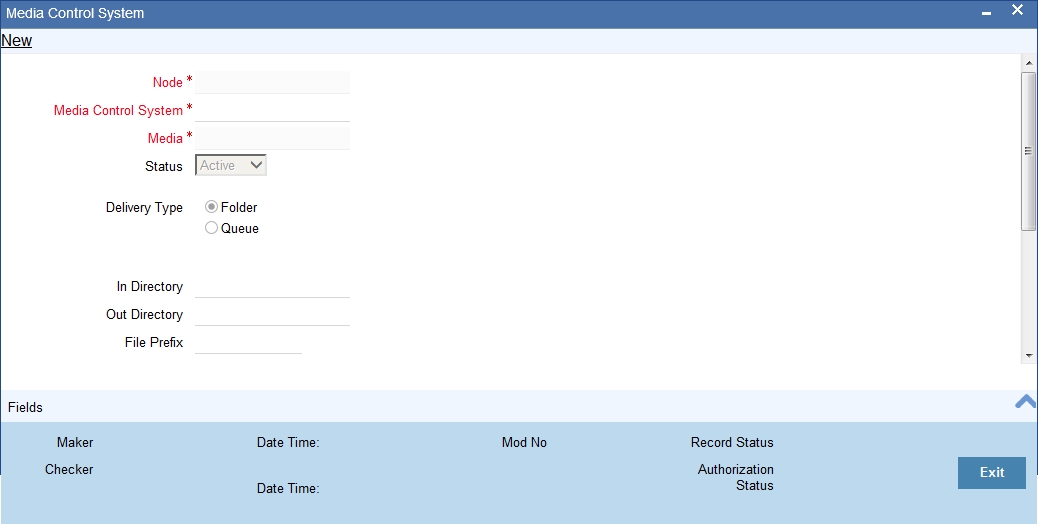 You can maintain MCS details in the ‘Message Media Control Maintenance’ screen. The details that you specify in this screen control the medium of delivery and reception of messages.