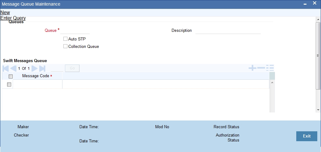2.4.1 Invoking Message Queue Mapping Maintenance Screen