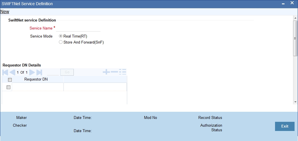 If destination is Swiftnet connectivity then a field swiftnet connectivity needs to be selected from LOV which gives the list of connectivity lines.