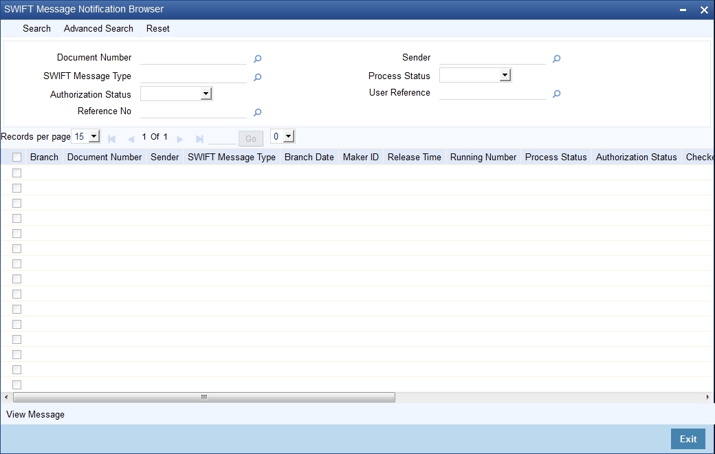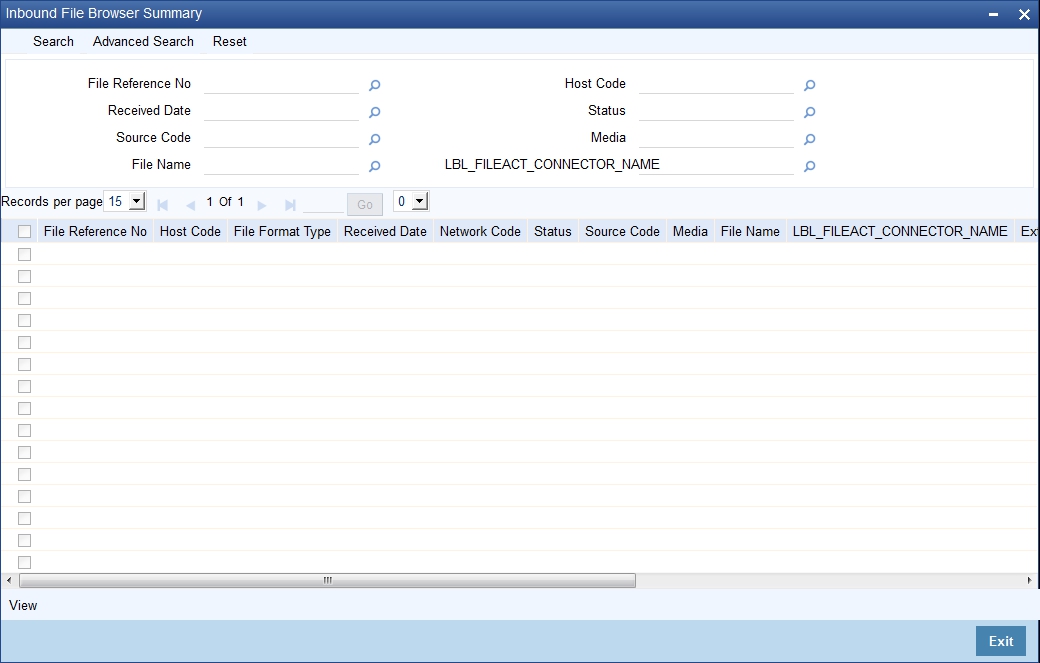 You can use the inbound file browser for searching and viewing the inbound files. To invoke the screen, type 'MSSIFBRW' in the field at the top right corner of the application toolbar and click the adjoining arrow button.