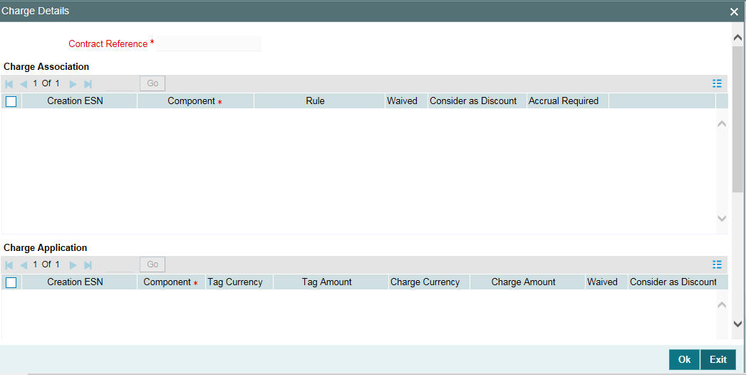 For more details on the ‘Contract Charge Details’ screen, refer the Charges User Manual.
