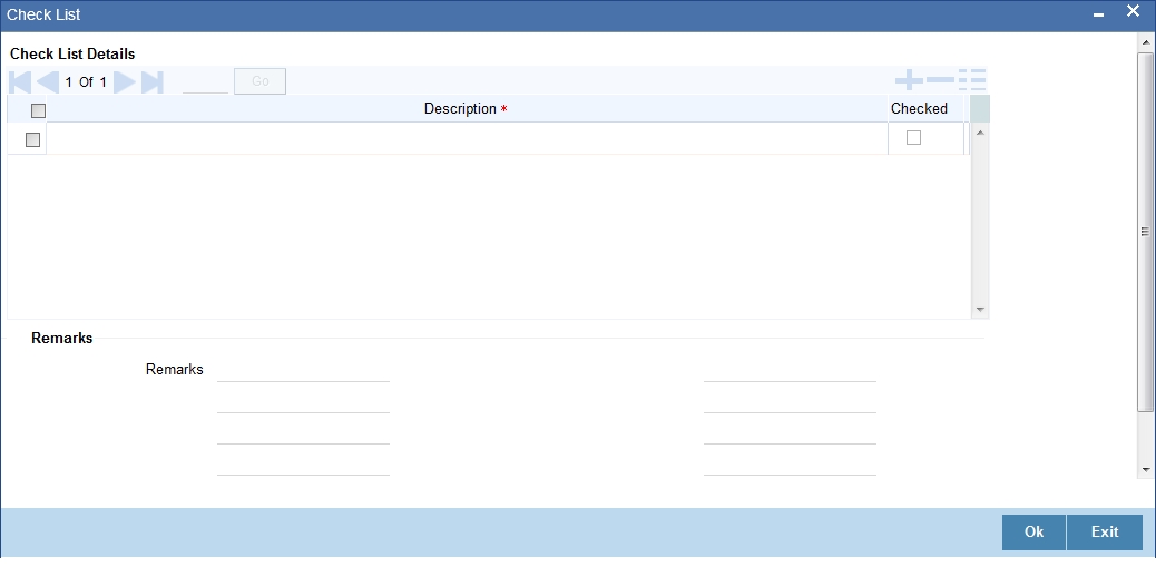 To every online event, you can associate check list items through the ‘Event Checklist’ screen. To view the checklist items associated with the ‘Disbursement’ event (DSBR), click on the ‘Check List’ tab.