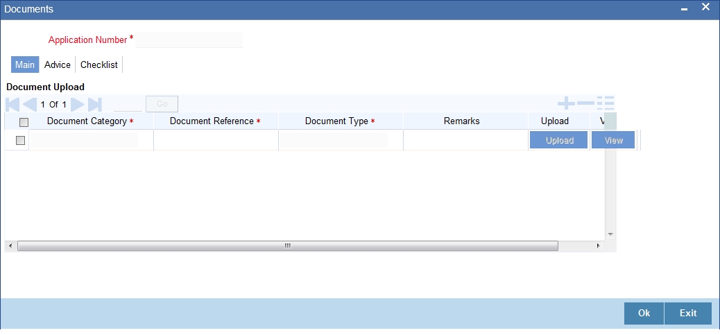 Specify the Application number to view the existing records through this screen. Users belonging to any kind of role can perform this activity.
