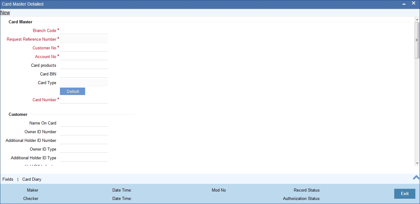 You will be allowed to capture different types of debit cards in Oracle FLEXCUBE. The cards are linked to individual customer accounts.