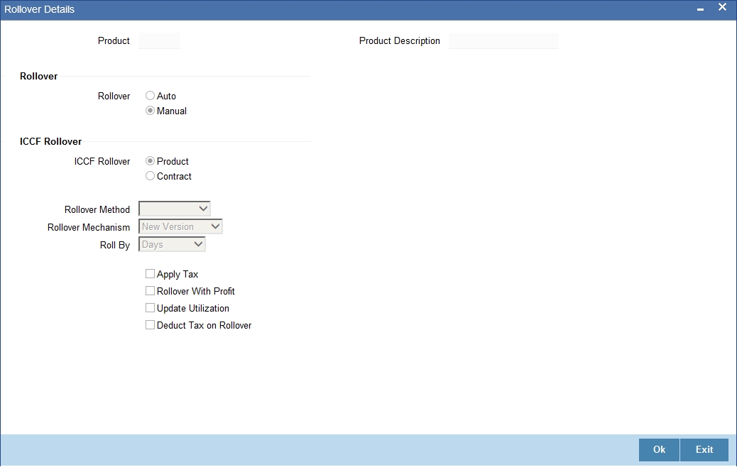For a deal involving a product for which a rollover is allowed, you should specify the mode of rollover - automatic or manual - during processing.