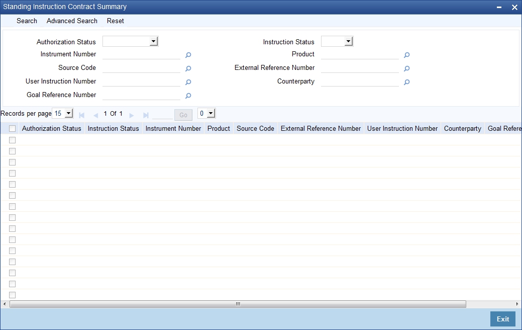 You can view the SI contract using ‘Standing Instruction - Contract Input - Summary’ screen. To invoke this screen, type ‘SISTRONL’ in the field at the top right corner of the Application tool bar and click the adjoining arrow button.