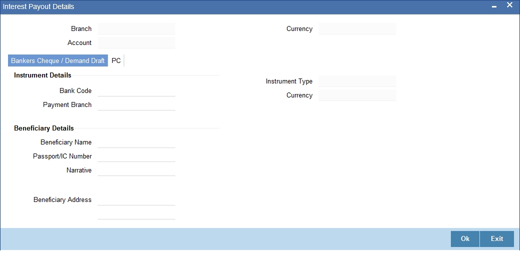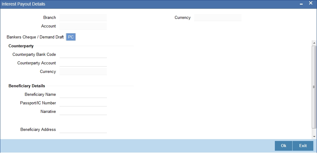 This invokes the ‘Term Deposit Interest Payout Details’ screen. |