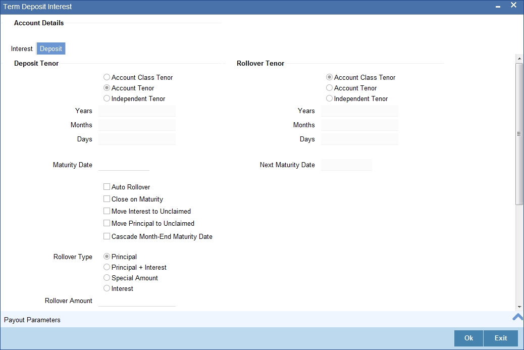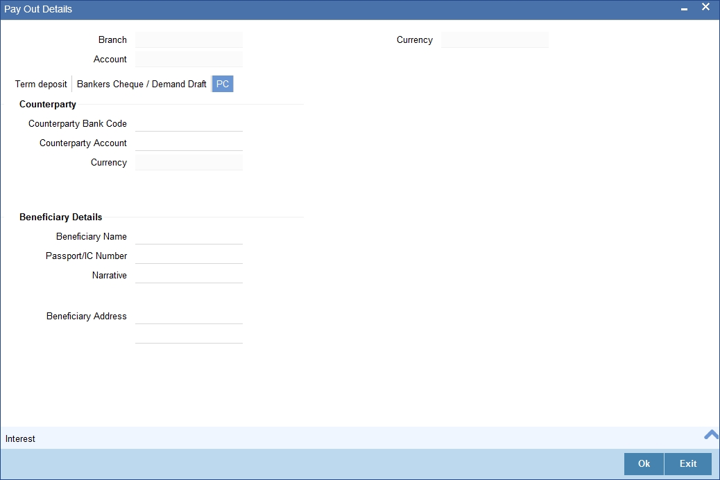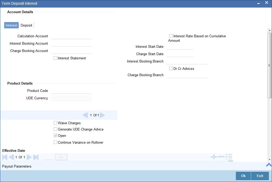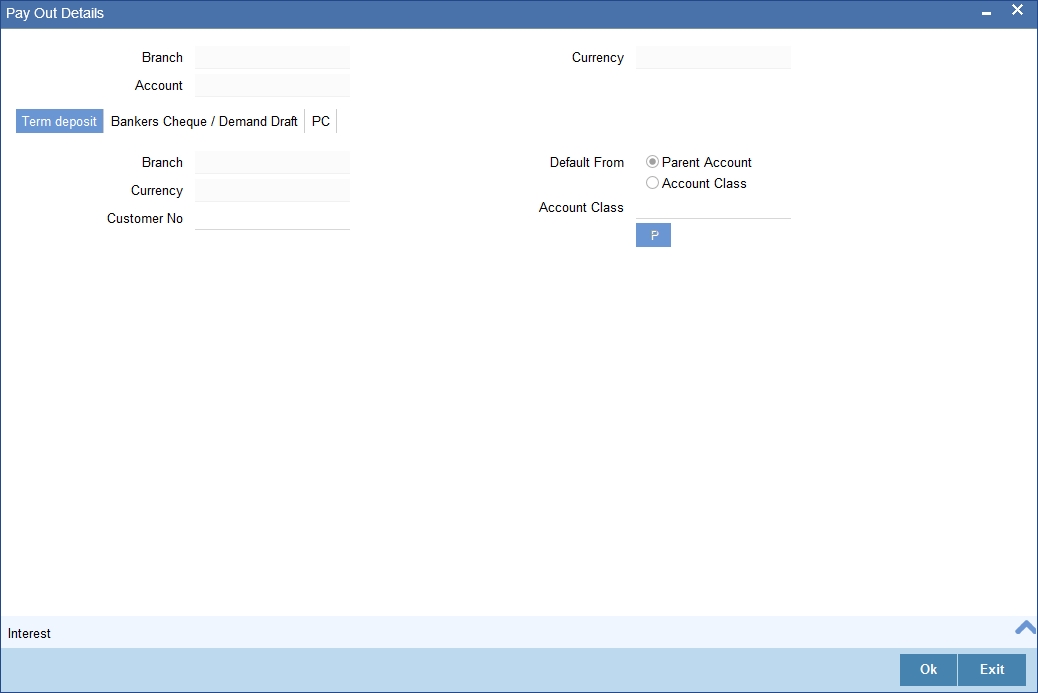 This invokes the ‘Term Deposit Payout Details’ screen. |