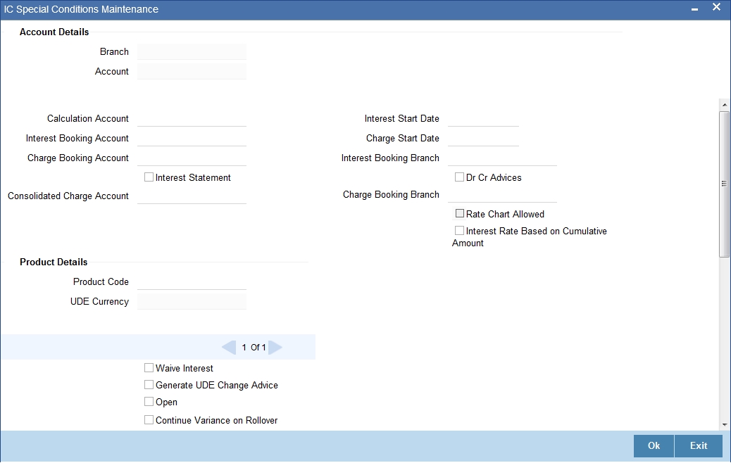 Click ‘Interest’ button on the ‘Deposit Account Booking’ screen and invoke the ‘IC Special Conditions Maintenance’ screen.