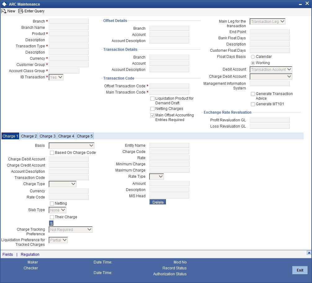 In order to compute applicable charges, the following screens need to be maintained, before proceeding with ARC Maintenance:
