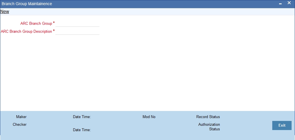 Since the ARC related detail are maintained at the Head Office of your bank, the details that you specify in this screen will be made applicable to all the branches of your bank.