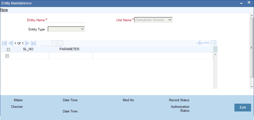 Select the Parameter if ‘Restriction Code’ is selected in the Entity Type field, from the adjoining option list. All active restriction codes as maintained in the system are displayed in this field. For more information on restriction code maintenance, refer to the section ‘Restriction Amount Maintenance’ in the Core Services Module.