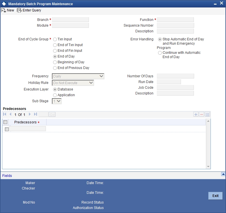 For further details about this screen, refer the chapter ‘Setting- up Mandatory Programs for EOD’ in the AEOD User Manual.