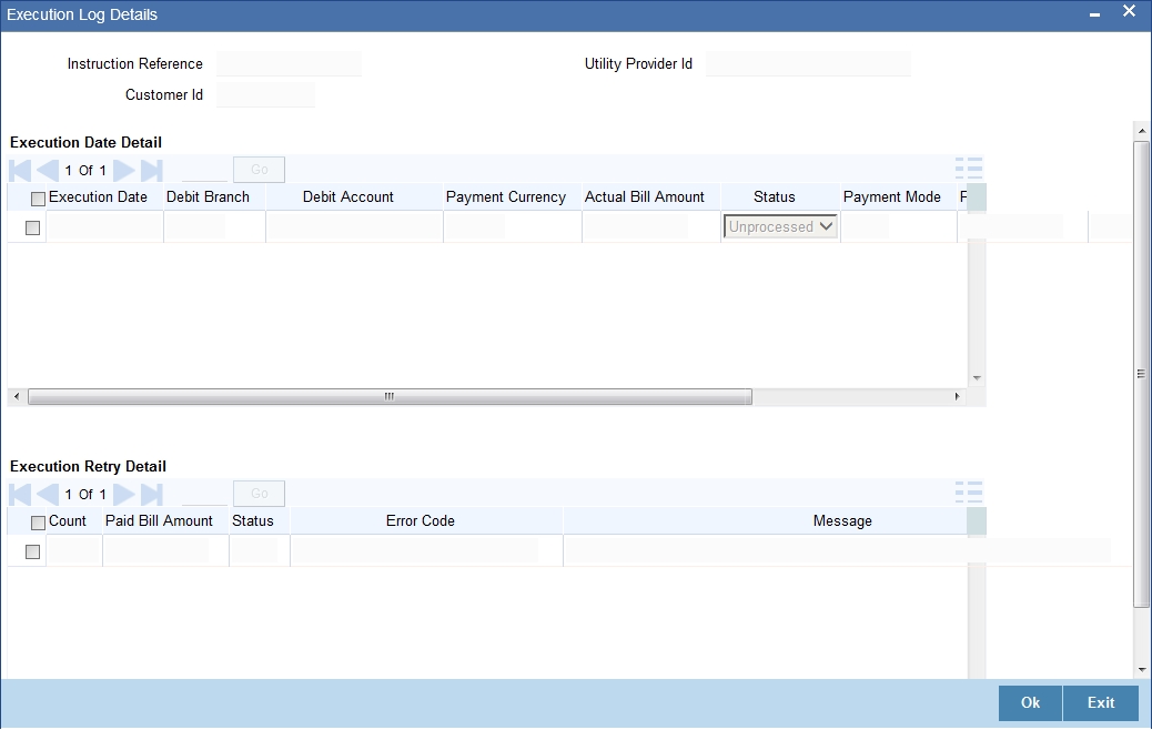 Click ‘Execution Log’ button and invoke the ‘Execution Log Details’ screen.