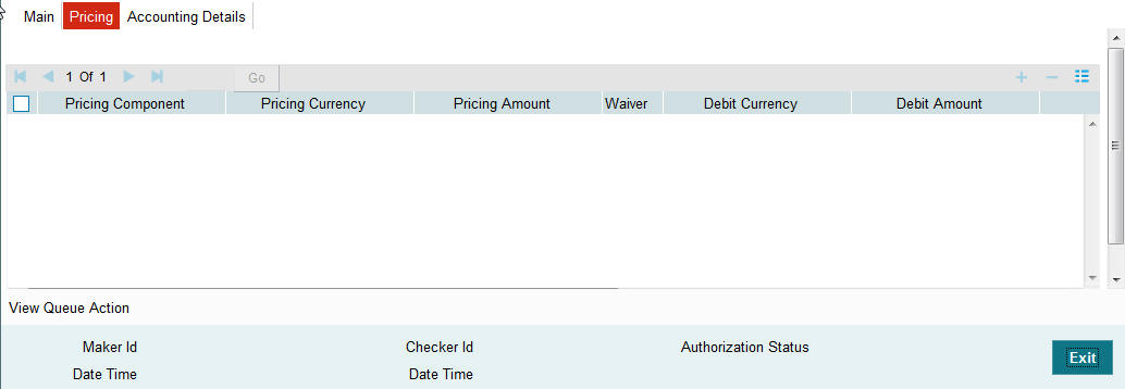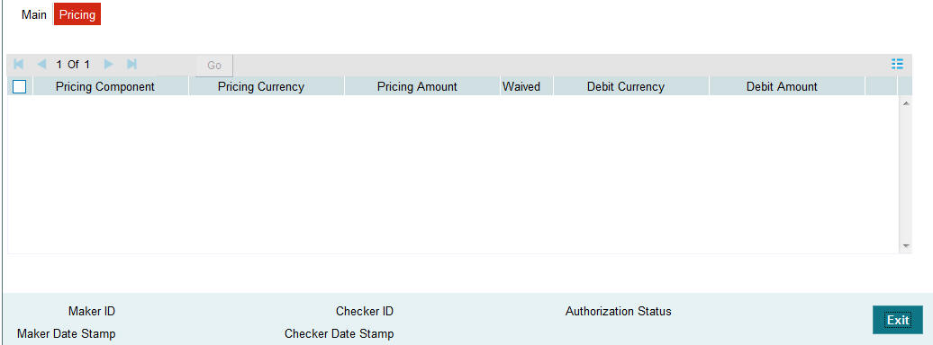 You can view pricing details in this screen. Click on the ‘Pricing’ tab to invoke this screen.