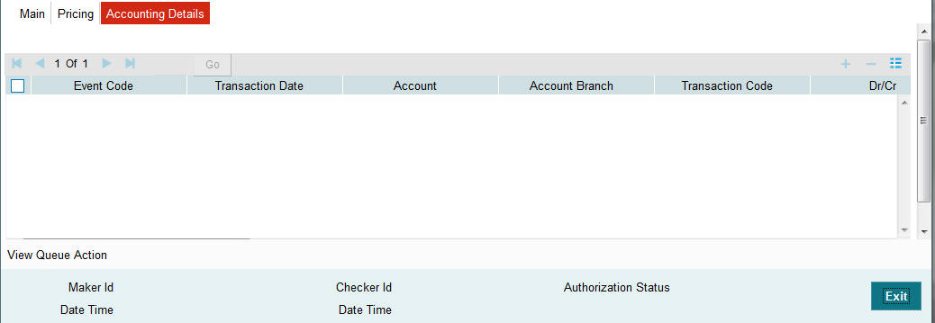 Click on the ‘Accounting Details’ tab to invoke this screen.