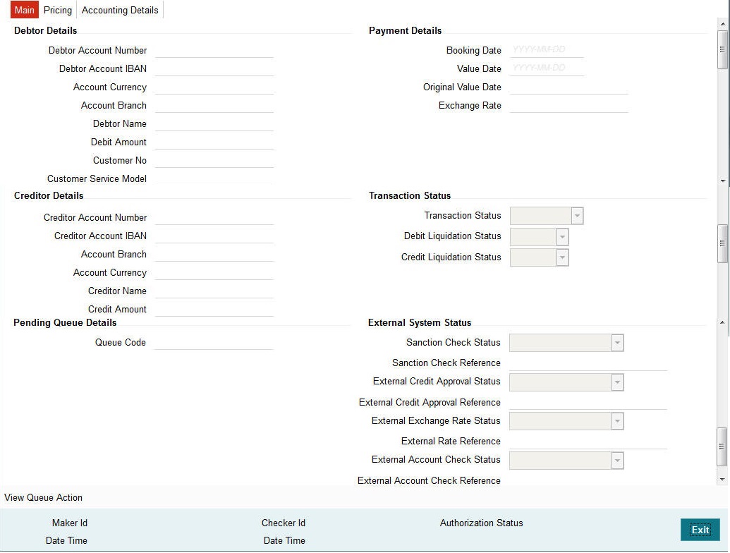 The System generates the transaction reference number. For more details on the format, refer the Payments Core User Guide.