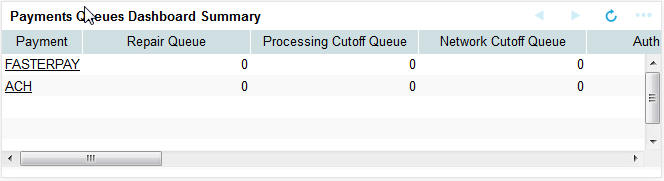 This screen provides a count of payment transactions that are held in different exception queues of the logged in host code.