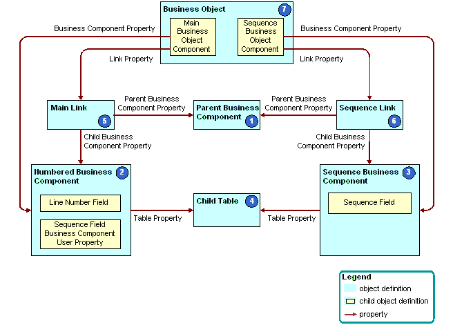 - Numbered business component. The business component that contains the child records in the parent-child relationship. For example, the Opportunity Product business component is the detail in the parent-child relationship with Opportunity. The numbered business component includes the following child object definitions: