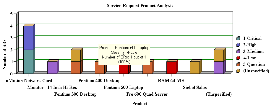 Configuring Siebel Business Applications > Configuring Special-Purpose Applets > Configuring a Chart Applet > How Siebel CRM Creates a Chart AppletSiebel CRM builds a chart as an applet that contains one or more Chart object definitions. A Chart is a child of an applet. The Business Component property of a chart applet identifies the business component that provides data that Siebel CRM displays in a chart applet. Records in this business component are subject to the current view, the current query, and visibility requirements. Business component fields provide the data for the category, data point, and series axes in a chart applet. The properties of the chart object define the relationship between axes and fields. A single bar or line graph is the simplest form of chart applet. It contains no series axis and only a category field and a data point field are defined. Siebel CRM plots pairs of category and data point field values as points or bars. If multiple records use the same category value, then Siebel CRM adds together their data point values. Figure 62 includes opportunities on the data point axis that Siebel CRM plots against the source of the opportunity on the category axis. Example sources include referral, magazine article, Web site, and so on. To create the data required for the line, Siebel CRM checks the Source field in each record and tallies the number of opportunities for each distinct source value. Figure 63 includes the result, which is a two row temporary table that includes a column for each source.
