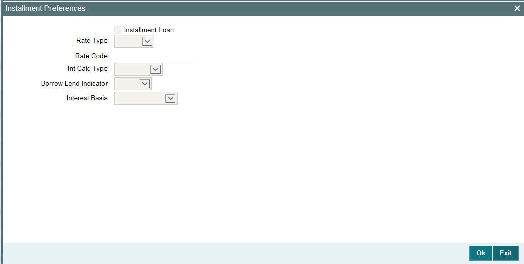In the ‘Loans and Commitment - Contract Input’ screen, click on ‘Installment Loan’ to modify the unearned interest calculation parameters.