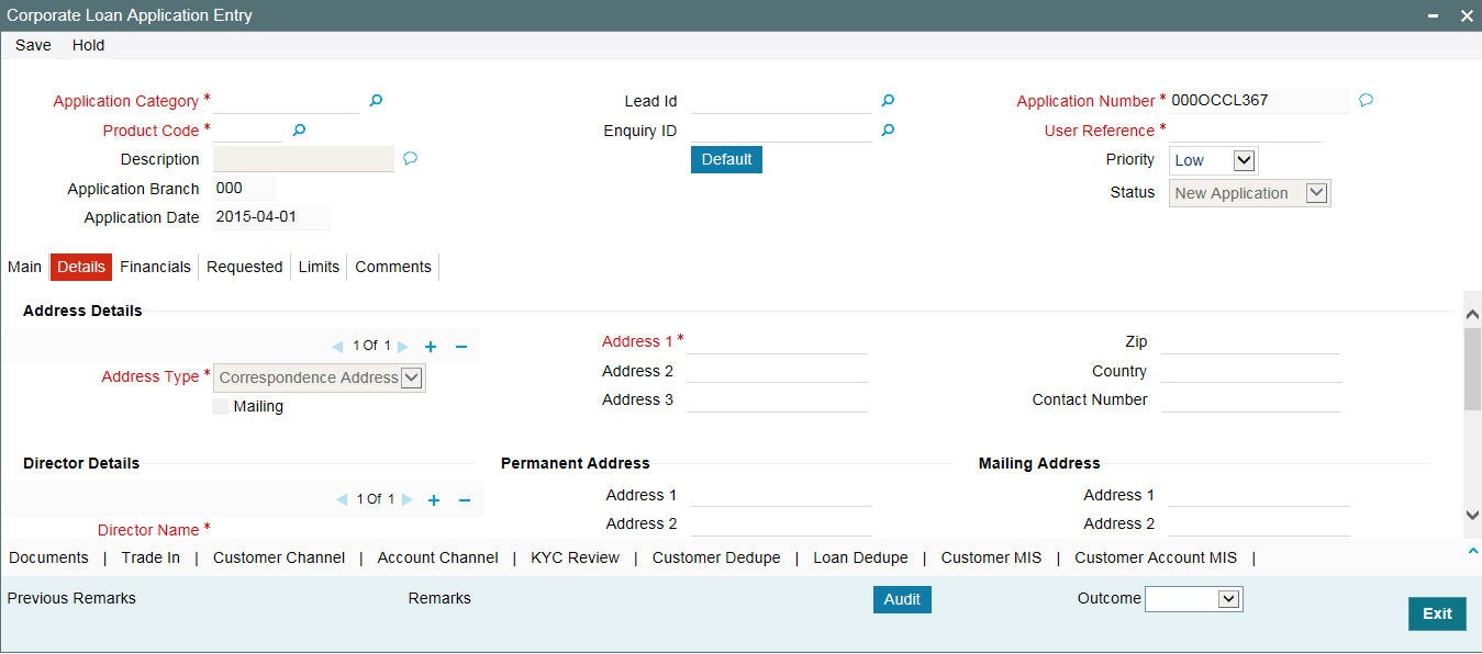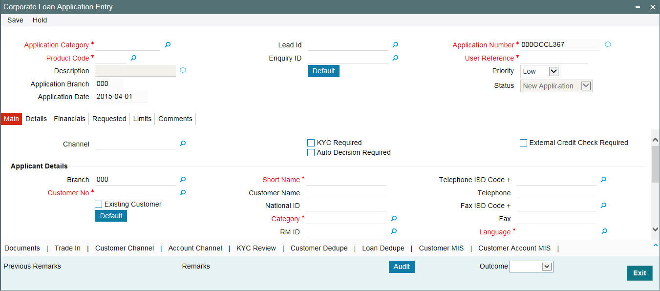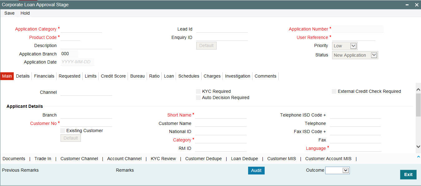 The credit score tab is used to calculate the credit score details of the customer. You can also interface with external Credit engines and display recommendations and report.