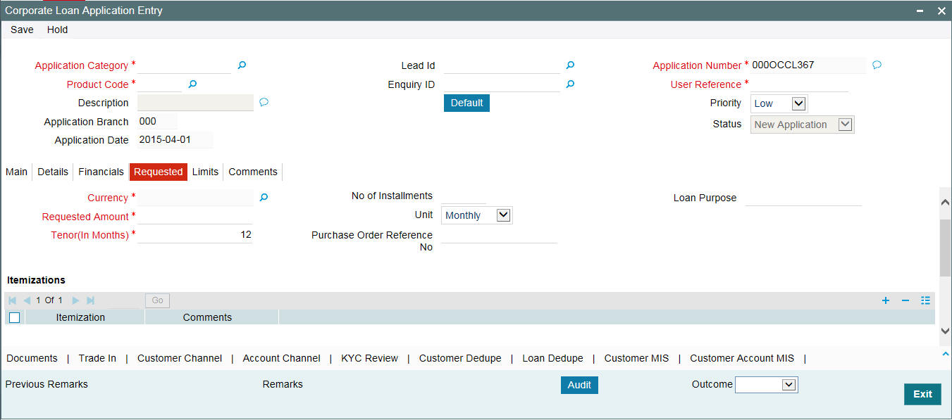 In this stage, the bank also conducts vehicle evaluation based on the details that have been captured at the ‘Application Entry’ stage. This evaluation can be done with details from an external agency in the collateral tab.