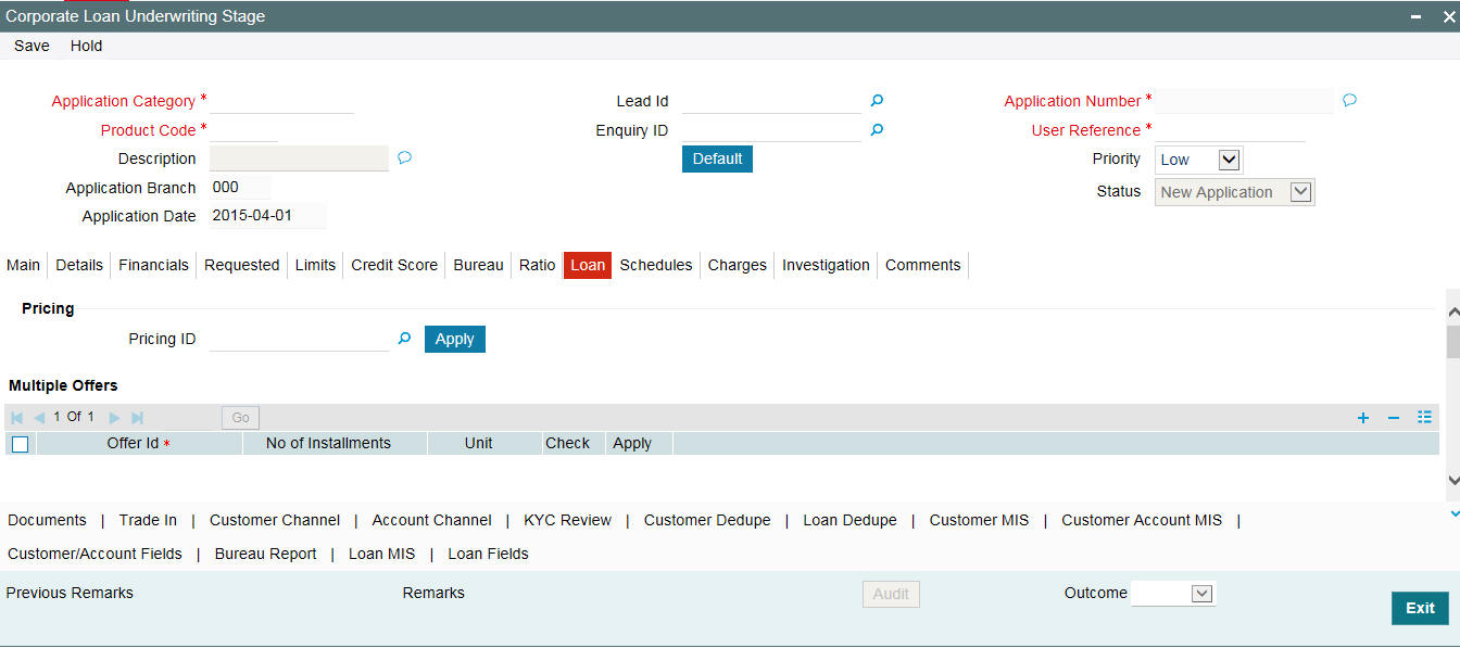 If the pricing is not maintained for the application category, then on clicking the ’Apply’ button, the pricing and the offer will not apply for the loan.