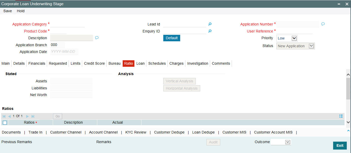 Click ‘Calculate Ratios’ button to calculate the asset/ liability ratios for the customer.