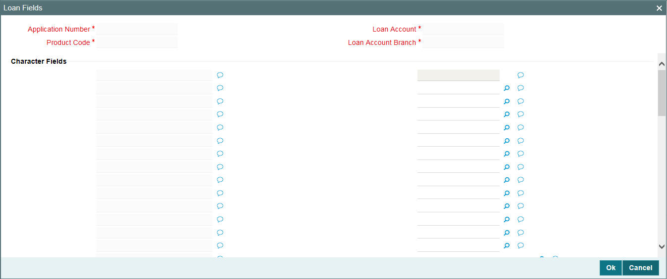 You can capture the Loan UDF details by clicking ‘Loan Fields’ button in ‘Corporate Loan Underwriting Stage’ screen. System displays the ‘Loan UDF’ screen where you can capture the details.
