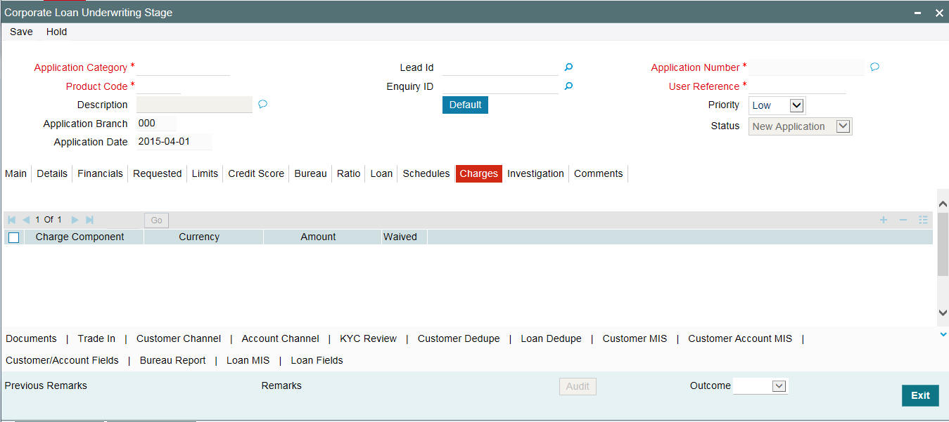 In ‘Charges’ tab, the system calculates and displays charges, if any applicable