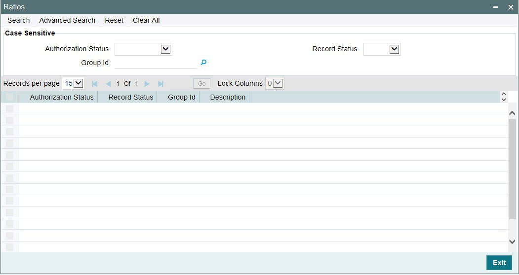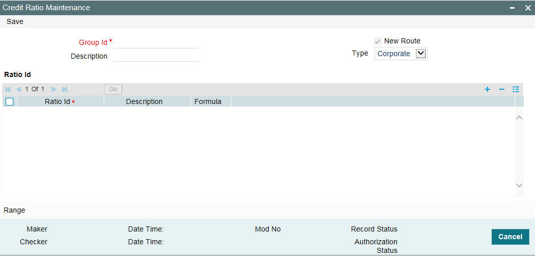You can maintain the rules to calculate the credit ratios in ‘Credit Ratio Maintenance’ screen. You can invoke this screen by typing ‘’ OCDRATMT’ in the field at the top right corner of the Application tool bar and clicking the adjoining arrow button.