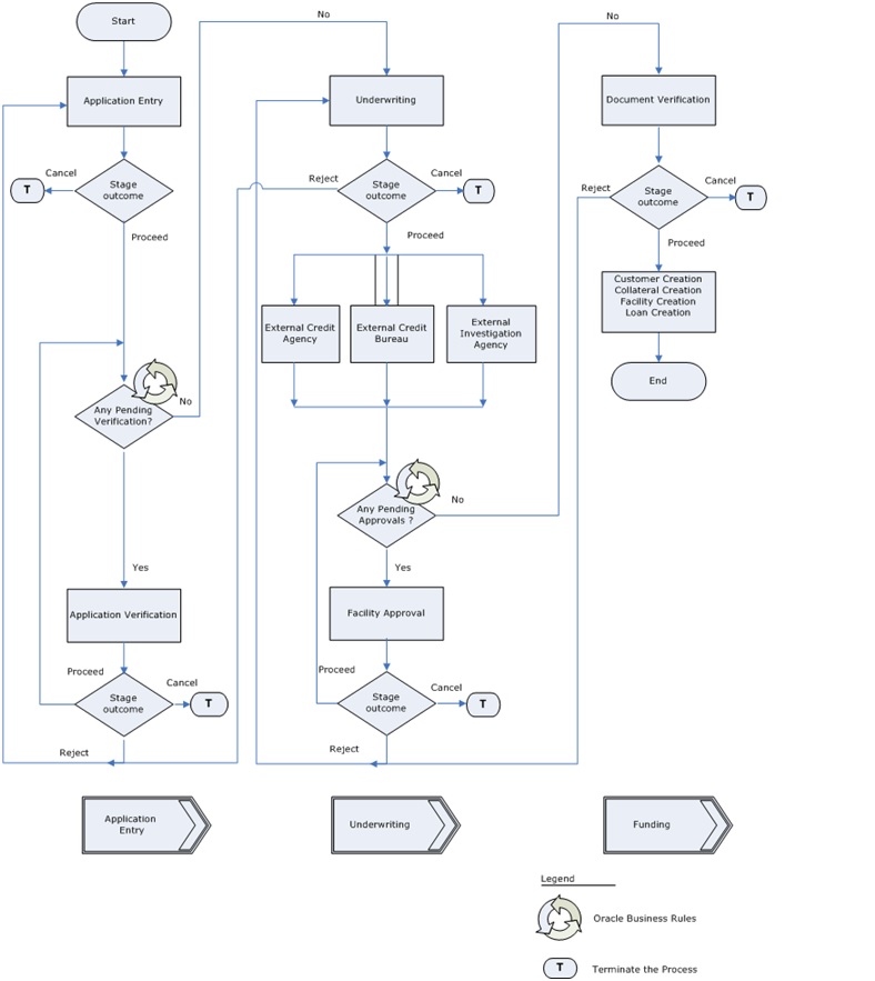The process of loan origination gets initiated when a prospective customer approaches the bank, with a loan account opening request or when the bank approaches a prospective customer, taking lead from its database. In case of a bank–initiated request, the process moves forward only if the prospective customer is interested. The entire process is carried out in multiple stages and on successful completion of each stage, it moves automatically to the next stage.