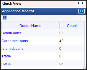 You can view the configured quick access dashboards in the Quick View. This frame consists of crisp and precise task-related information.