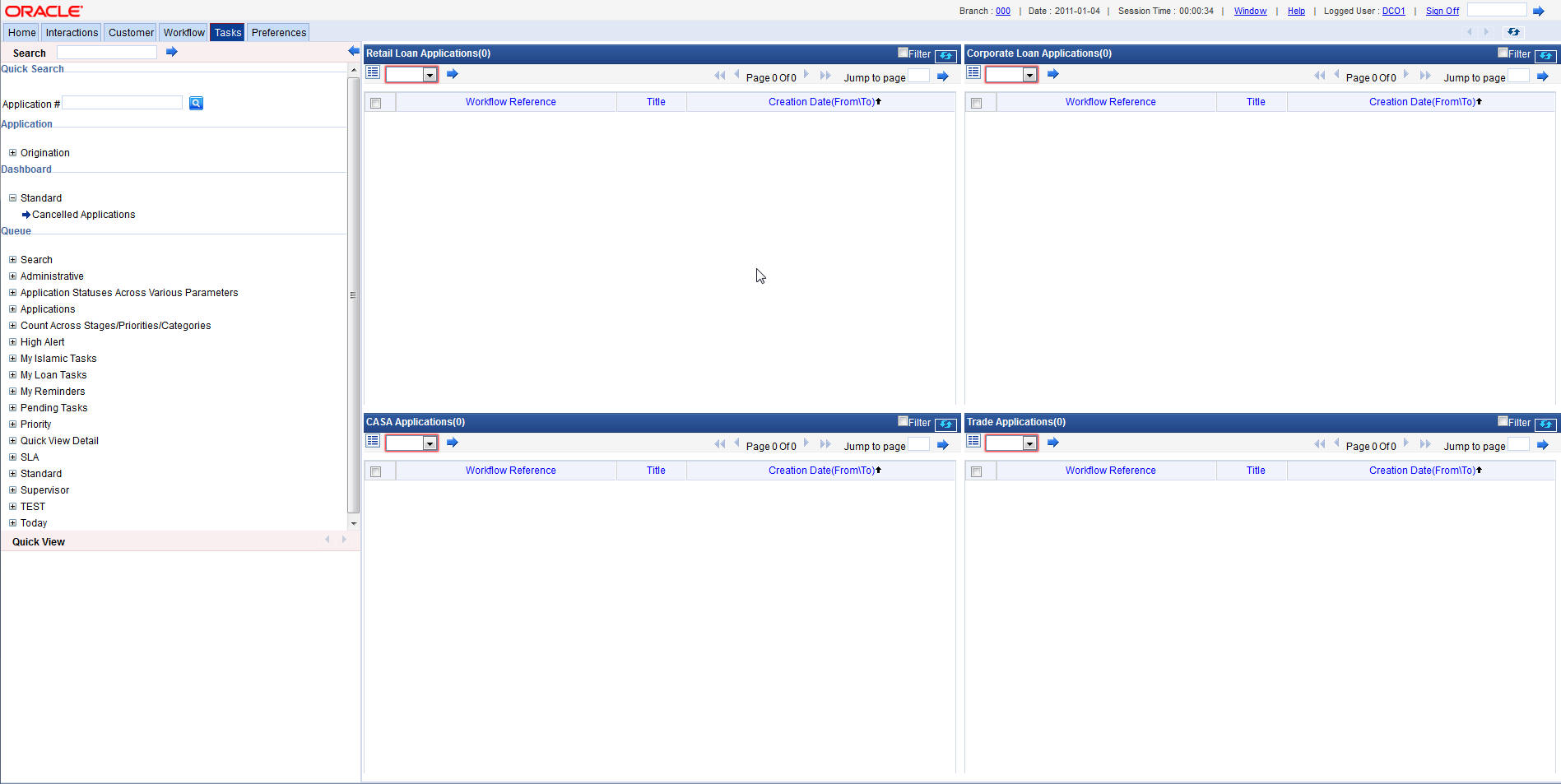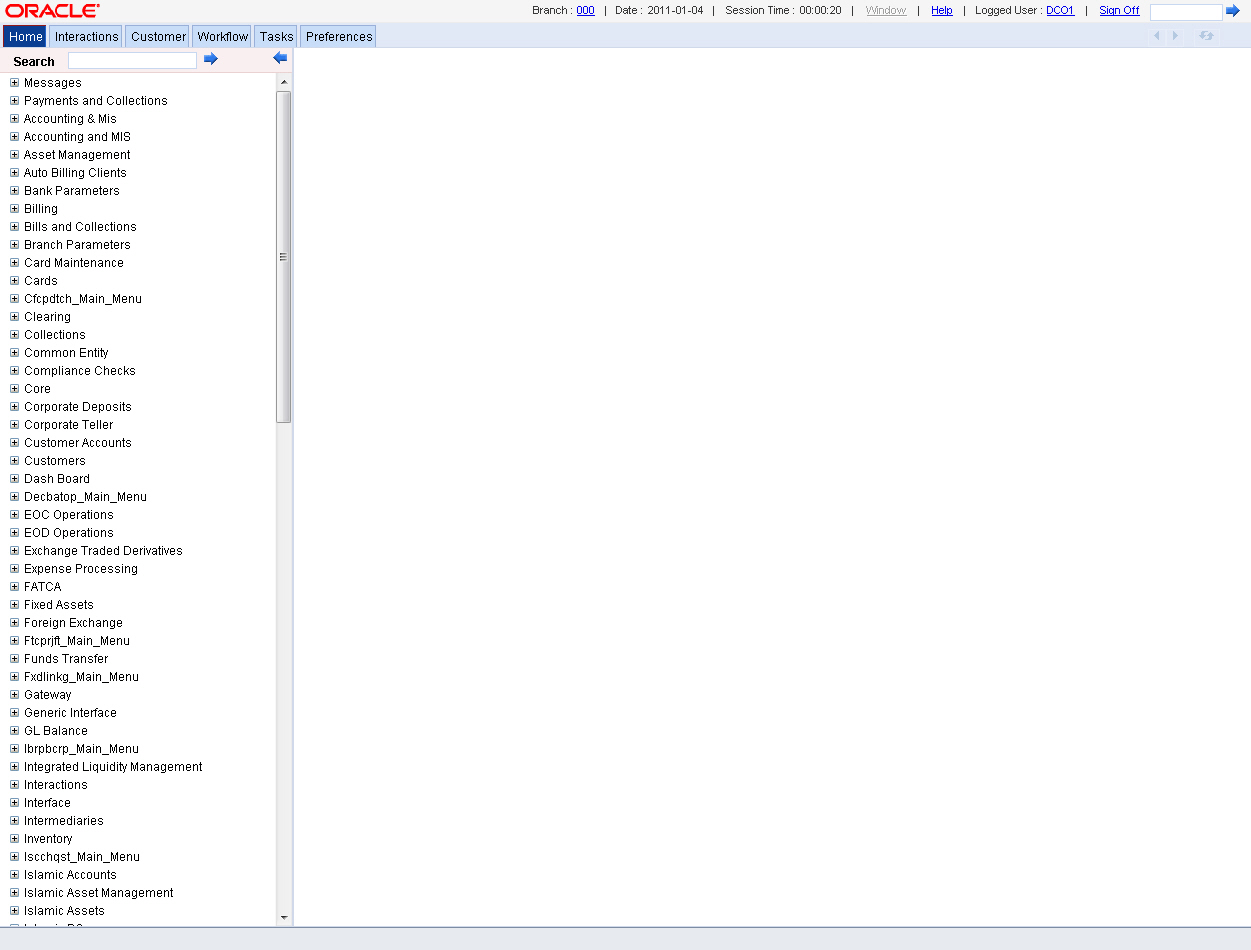 Under ‘Application’ section, you can view the menu to access the Oracle FLEXCUBE Origination screens.