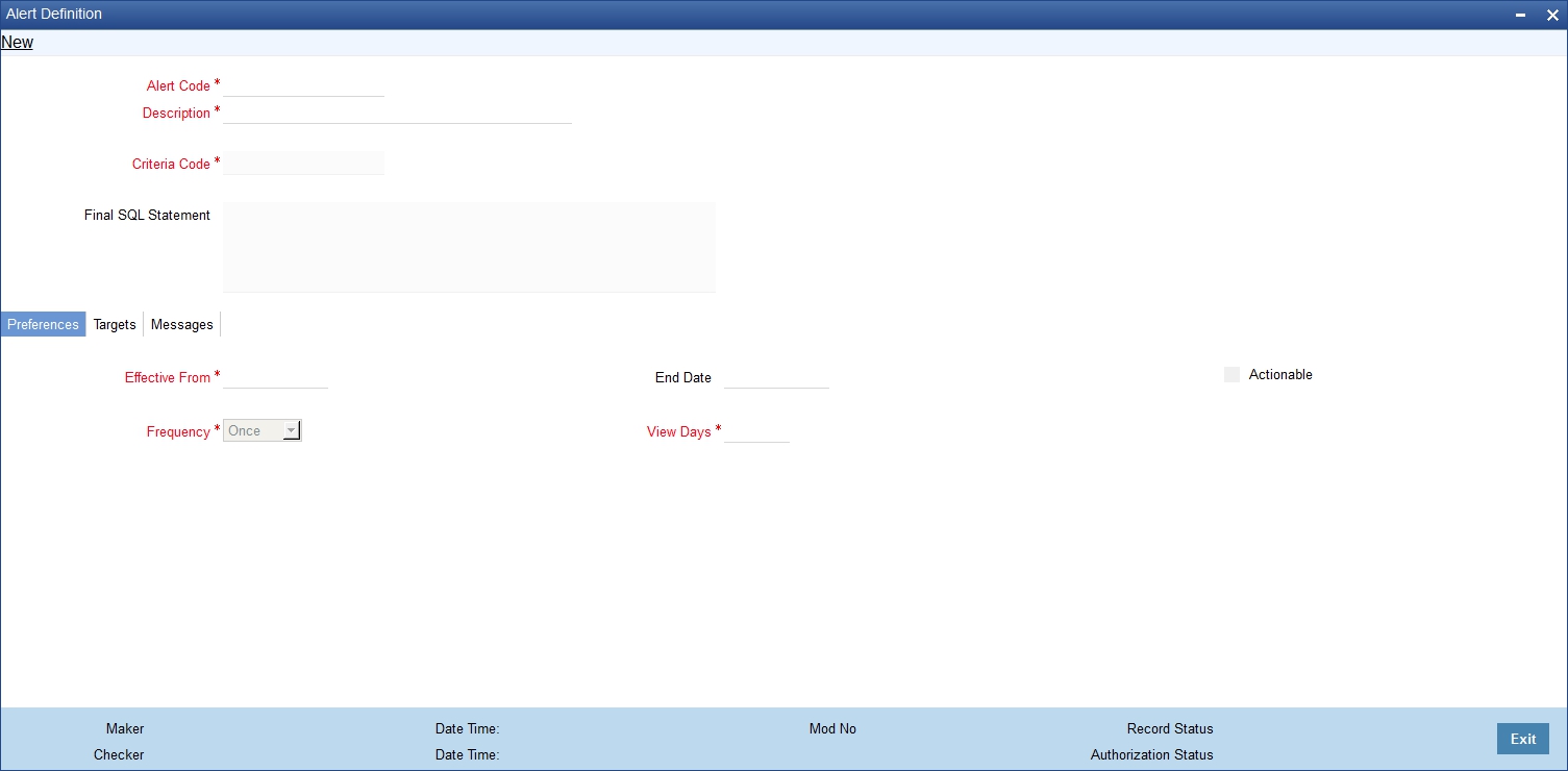 You can set the preferences for alert message generation under ‘Preferences’ tab. Click ‘Preferences’ tab on ‘Alert Definition’ screen: