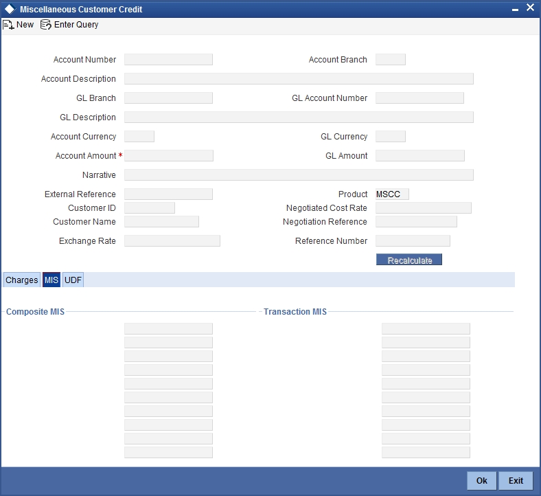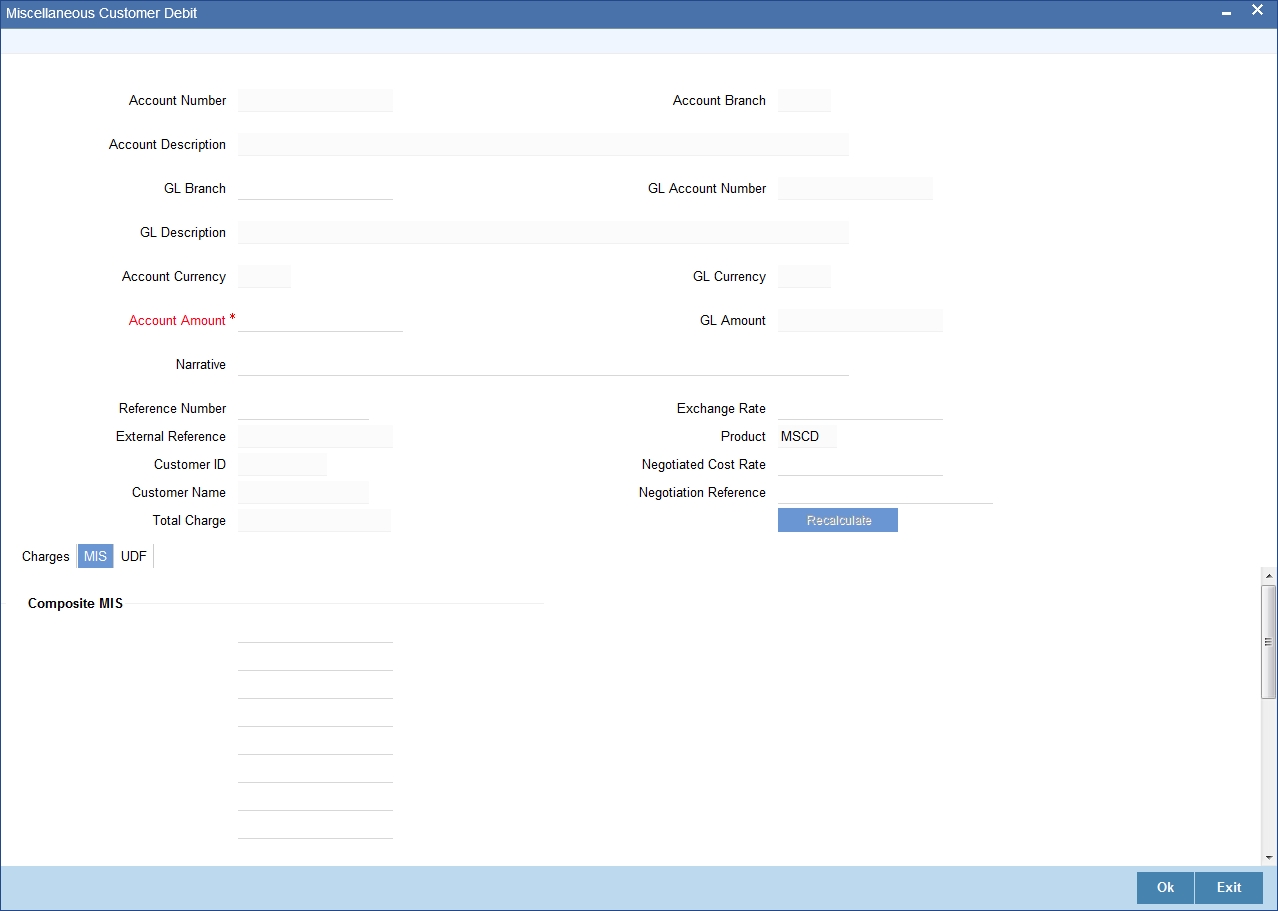 For more information on MIS details screen, refer to the section ‘Specifying the MIS details’ in the chapter ‘Miscellaneous Debits to a Customer’s Account’ in this User Manual.