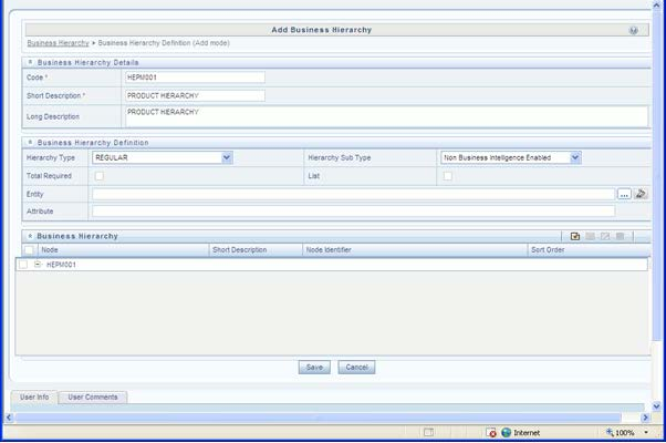 § If subtype is "Non Business Intelligence Enabled", then the user can add nodes and order in which the node should appear in the hierarchy (sort-order). Node identifiers