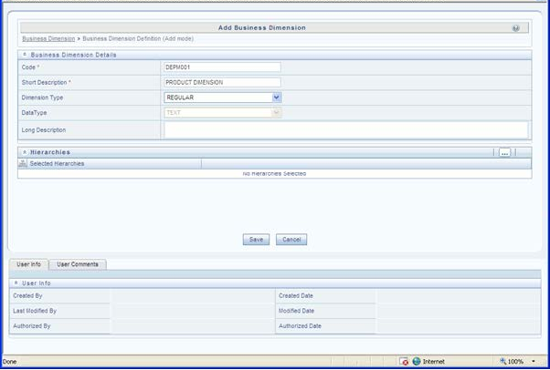 7. Click Save in Add Business Dimension screen to save the details.