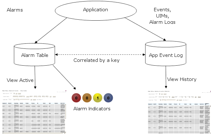 Alarms and events are recorded in a database log table. Application event logging provides an efficient way to record event instance information in a manageable form, and is used to:
