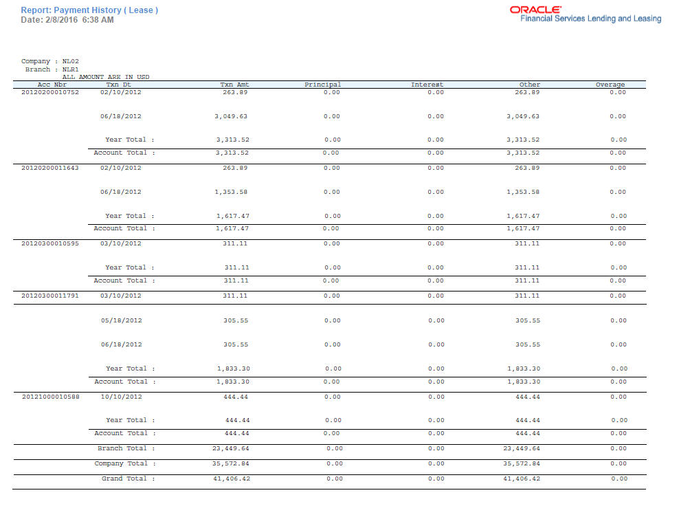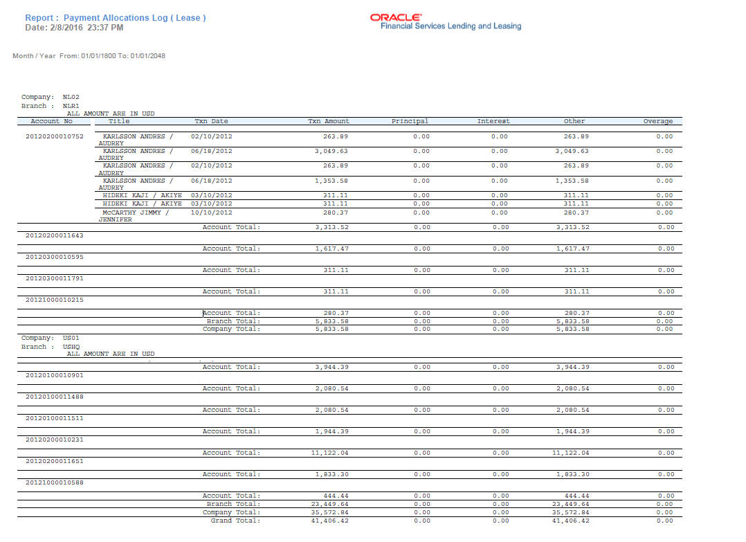 Example of the Monetary Txns Log By GL Post Dt - Lease report