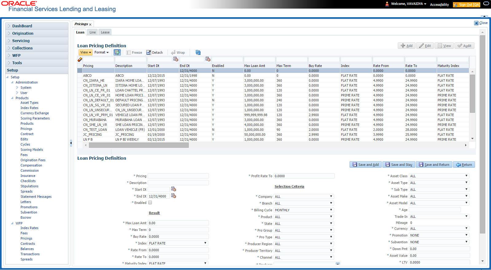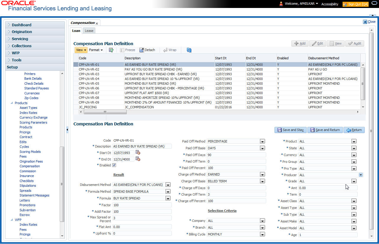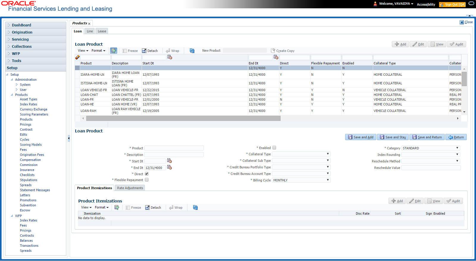 Under the Setup master tab’s drop-down link bar, the product Setup link opens screens that enable you to configure the basic business guidelines necessary to support one or more products in the system. This includes defining the types of collateral your company supports, creating lending instruments, and determining what is included in credit bureau reporting. Setting up the Products screens requires a thorough understanding of the current rules of your business and must be completed before you can use Oracle Financial Services Lending and Leasing. The Products drop-down link opens screens to record data of all the products supported by the system and contains the following links: