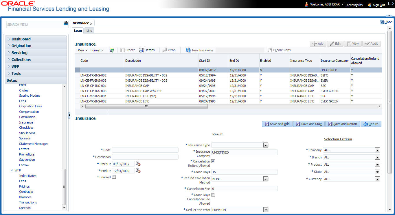 Oracle Financial Services Lending and Leasing provides tax and insurance escrow for loans. The Escrow screen contains subsection that allow you to set up these features.