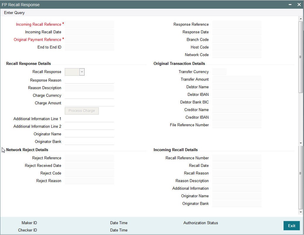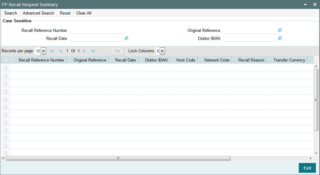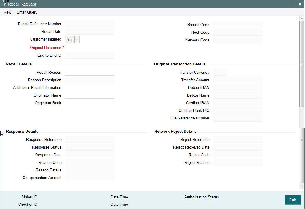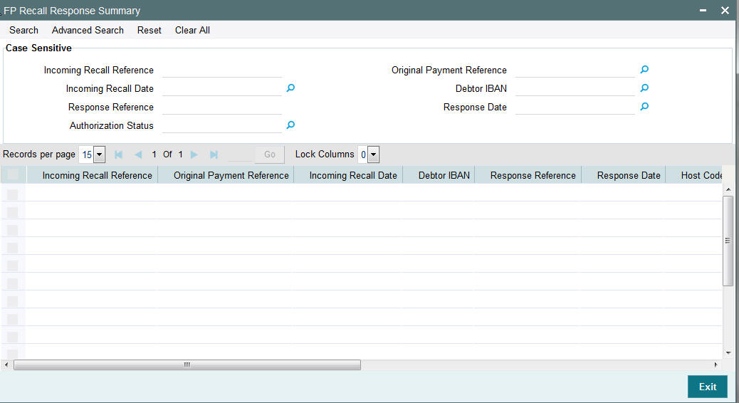 Recall requests received by the Beneficiary Bank are available in this screen.You can query the records and provide positive/negative response to the Originating Bank.